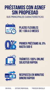 En este contexto, “sin propiedad” significa que el solicitante no dispone de un inmueble u otro bien que pueda servir como respaldo de la operación. Y “con ASNEF” implica que su perfil será revisado con mayor cautela, porque estar incluido en un fichero de morosidad influye de forma directa en la percepción de riesgo que tiene cualquier entidad.